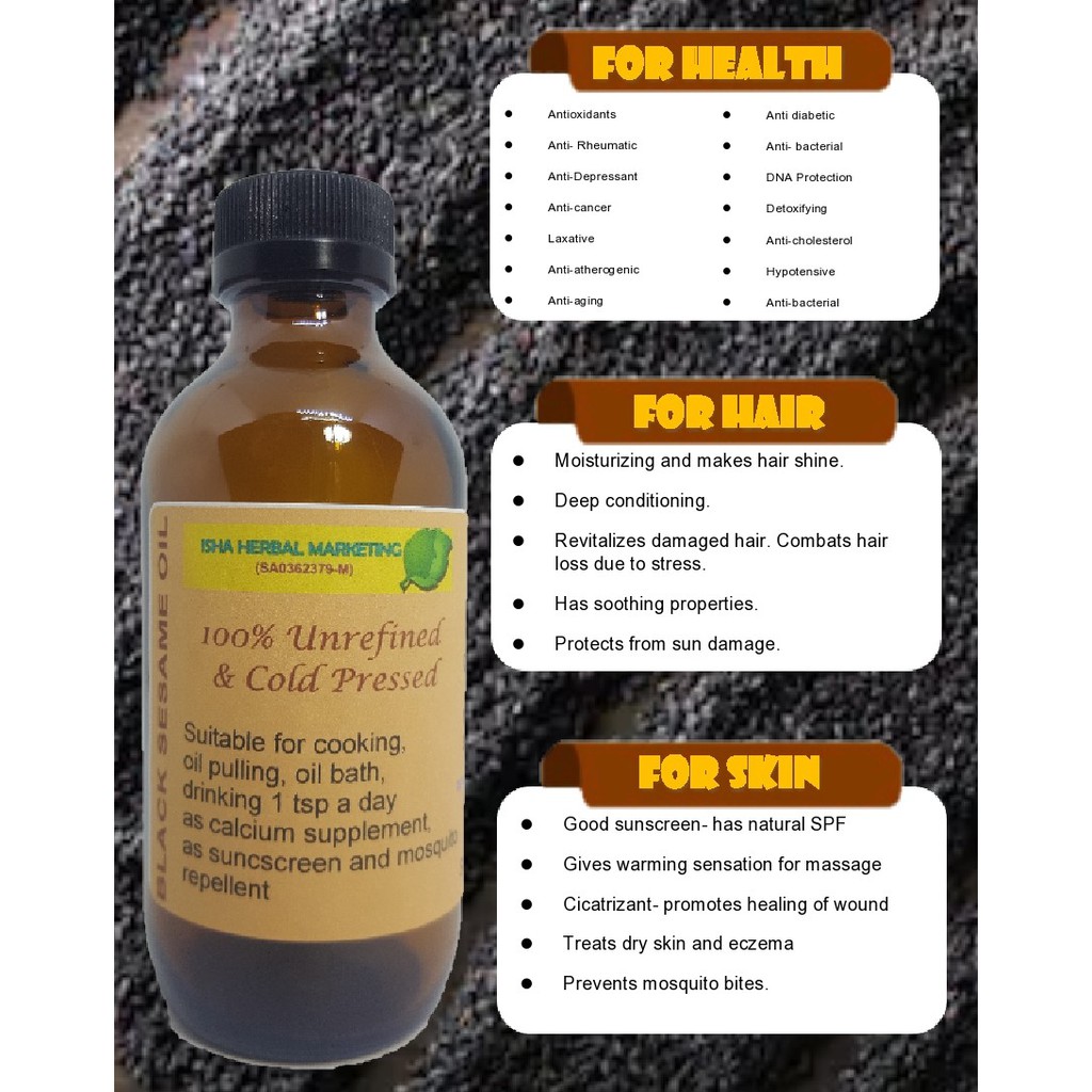 Choose the oil that has been extracted from black sesame seeds; Sesame oil for hair promotes good scalp health and encourages hair growth. There are 106 suppliers who sells black sesame oil for hair on alibaba.com, mainly located in asia. Check out our black sesame oil selection for the very best in unique or custom, handmade pieces from our herbs & spices shops. This is also a popular ayurveda massage oil for baby.